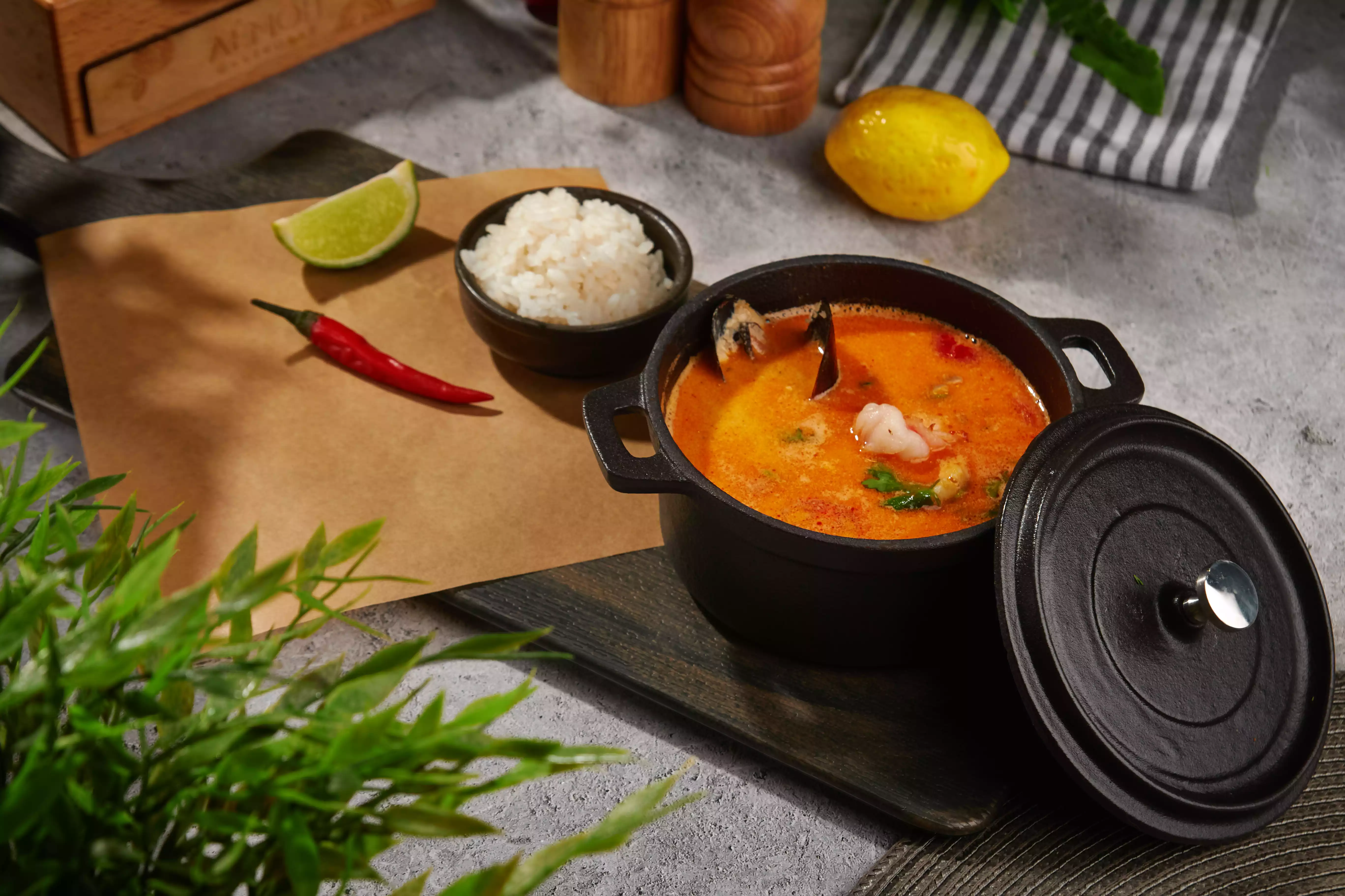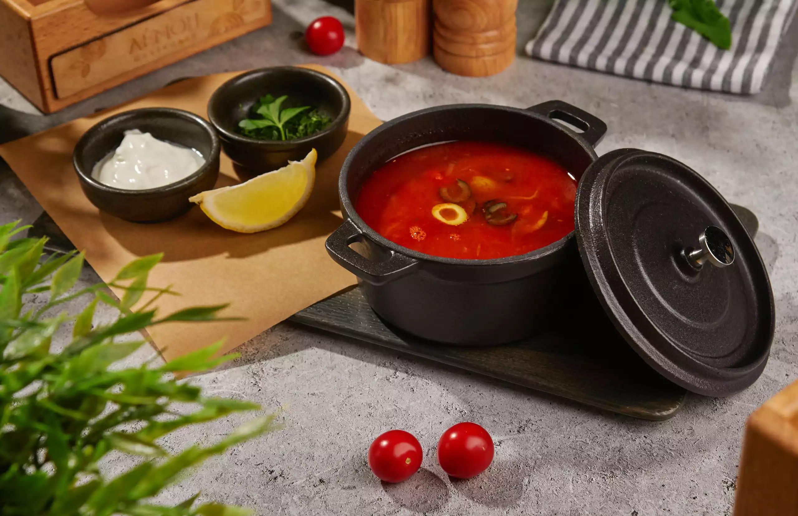 Солянка мясная с листьями лайма